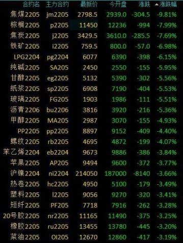 商品遭遇恐慌拋售:焦煤大跌近10%,棕櫚跌停