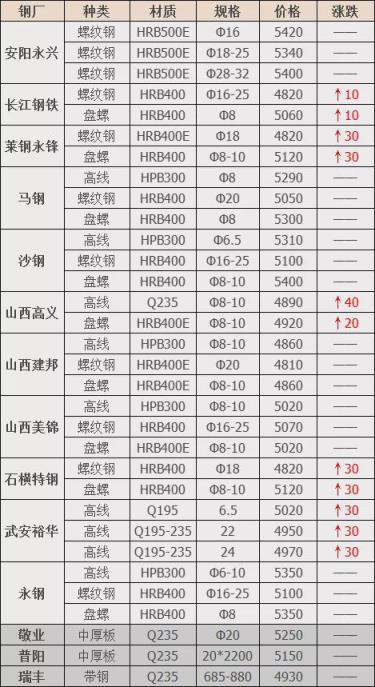 上調(diào)5家,占比33.3%,調(diào)價幅度10-40元/噸;