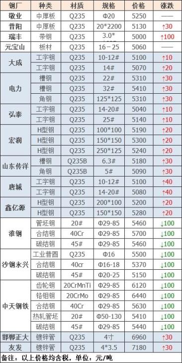 3月1日廣東河源德潤鋼鐵廢精密管價格格漲50元:鋼筋切粒3530;邊角料,新鋼板料3500;純鋼筋頭,直鋼筋3480;模具鋼、料頭圓鋼、軌道鋼、火車輪3480;硅鋼片停收;冷軋、熱軋、碎料沖子3430;優(yōu)重3480;鍛打料、馬蹄鐵3480;重廢3450;機械生鐵、高碳鋼、鑄鋼件、生熟混裝3450;厚剪3400,不含稅。