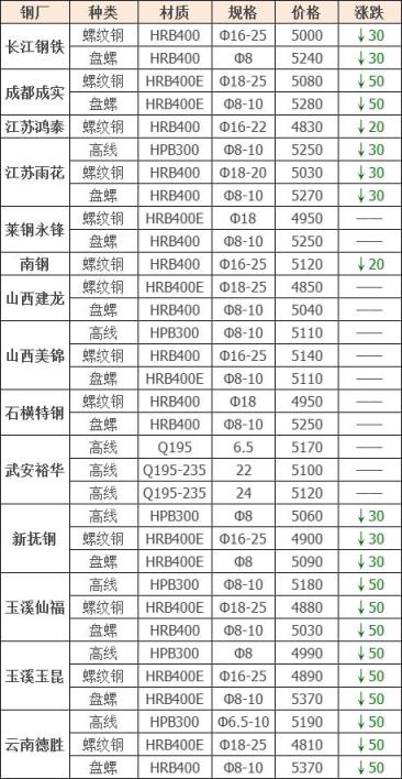 下調(diào)7家,占比63.6%,調(diào)價幅度20-50元/噸;