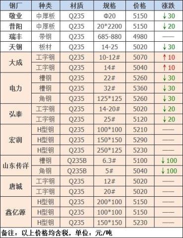 下調(diào)6家,占比54.5%,調(diào)價(jià)幅度20-100元/噸;